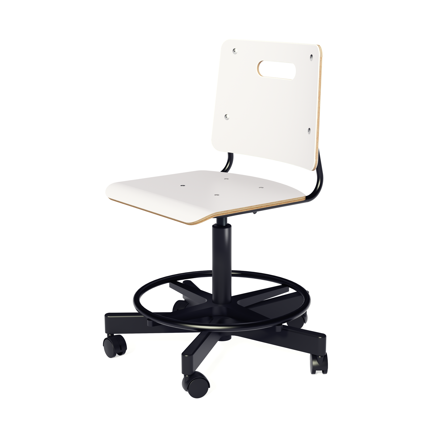 Reguleeritav ratastel jalatoega klassitool on viie jalaga, ratastel, reguleeritava kõrgusega käetugedeta pöördtool. Tooli rataste raamile kinnitub viie kinnitusega roostevabast või must torust jalatugi. Tooli seljatugi ja iste on lamineeritud vineerist, vineeri servad nähtavad. Seljatoe keskel on ovaalne ava, mis kergendab tooli tõstmist. Istme nurgad on suure raadiusega R50. Istumiskõrgus reguleeritav gaasvedrustusega, reguleerimiskang istmeplaadi all.